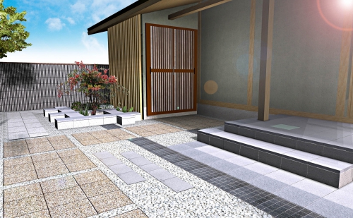 アプローチ舗装:エコレイク(ENR-4)/スクエアストーン(バーナーブラック)/Gストーン(グレーみかげ、白みかげ)
