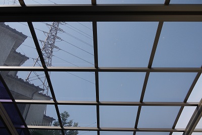 クリアの屋根材なので、明るくてこんなにきれいな青空
