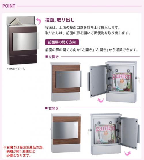 ポストの開く方向も選べるので、設置場所などによって選べますよ^^