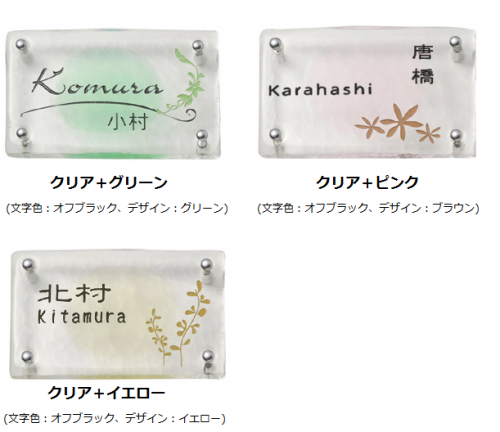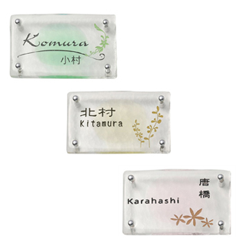 ガラス表札 G-03(ピン陶器色・デザイン文字同色)