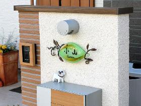 本日は、色合いの綺麗なガラス表札に、おしゃれなアイアンがついた