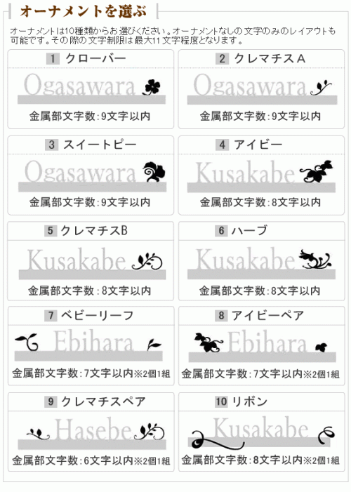 文字数が少ない場合もオーナメントを入れることによって、