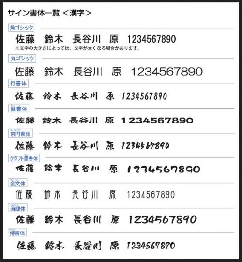 漢字書体は全9種類、英字書体は全12種類からお選びいただけます