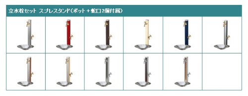 立水栓セット スプレスタンド(ポット+蛇口2個付属)のカラーは、11種類。
