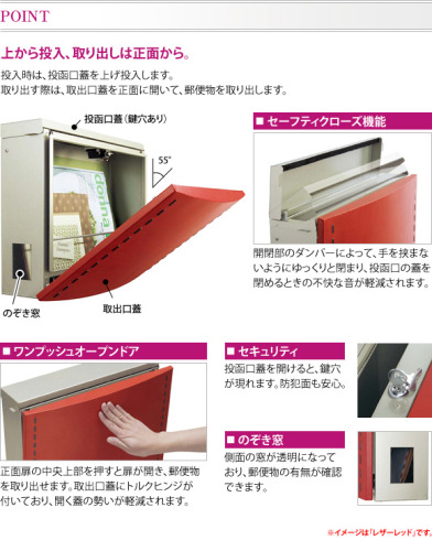 ゆっくり閉まるソフトクローズ機能搭載のシンプルなポストです