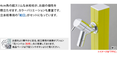 超スリムな4cm角の水栓柱がお庭の個性を際立たせます。