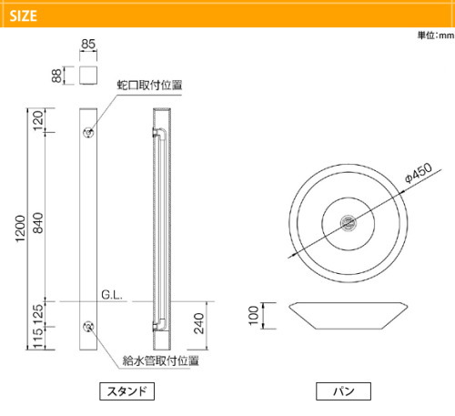 ※蛇口・パン(水受)は別売りです。必ず対応します商品をお買い求め下さい。
