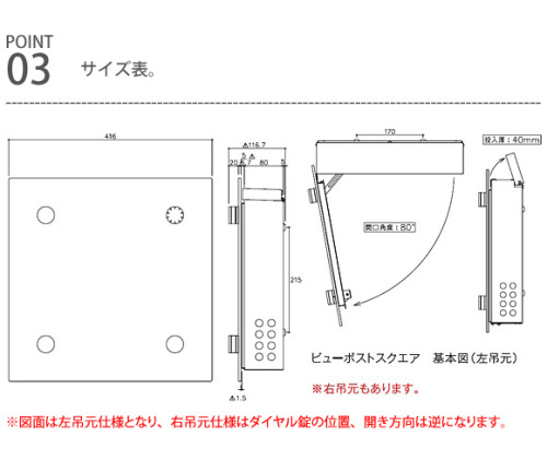 ※鍵穴は、ポストの右側になります。