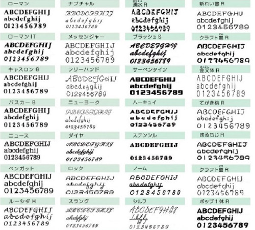 書体は以下一覧よりご選択いただけます