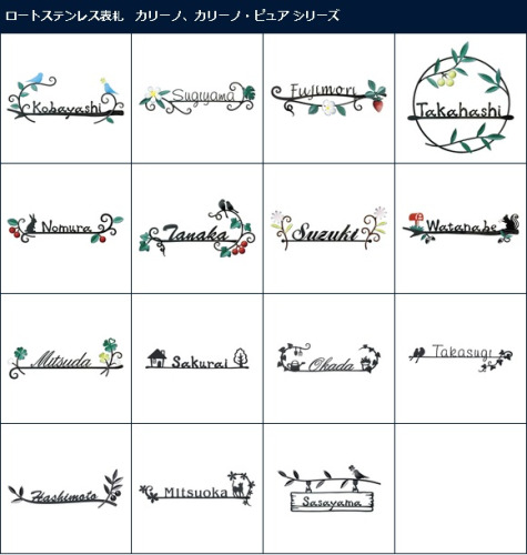 ロートステンレス表札 カリーノ、カリーノピュアシリーズ 商品ページ