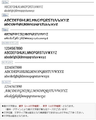 ●文字位置、文字サイズ等は固定となり微調整ができませんので予めご了承ください。