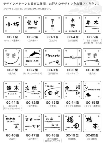●デザインのGC-7型、GC-8型、GC-9型、GA-15型は英字書体のみの対応となります。