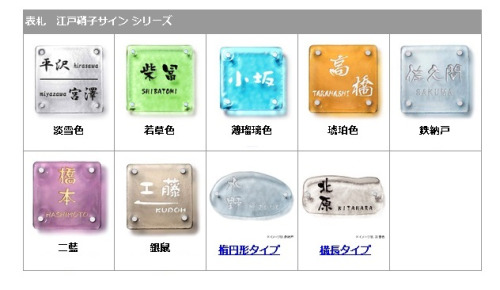 江戸硝子サインシリーズは2世帯以外にもサイズ違いや色違い