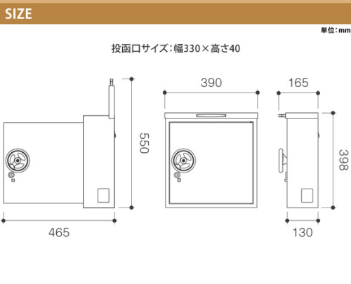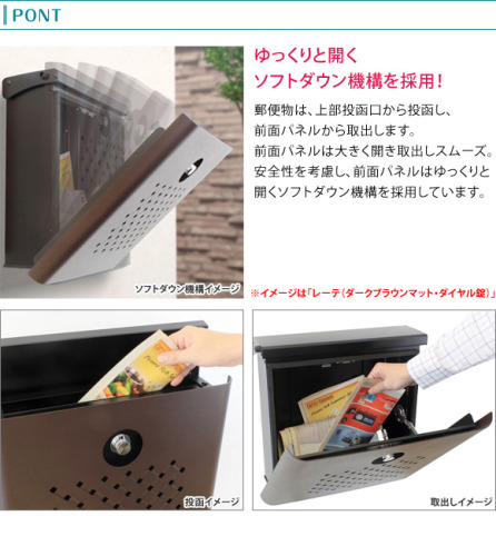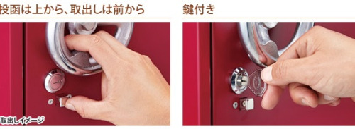 投函口の取ってやプッシュボタンで取出しに加え鍵も付属と防犯面も考慮されており、