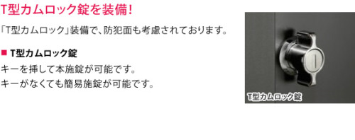 T型カムロック錠が標準装備されているので防犯も考慮されています