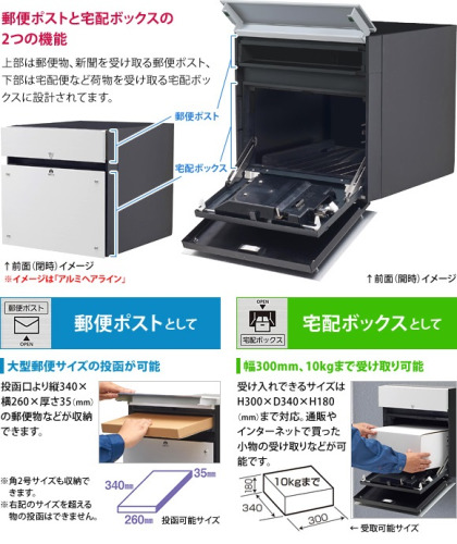 郵便ポストと宅配ボックス 両方の機能を兼ね備えたスタイリッシュタイプの宅配ポストです