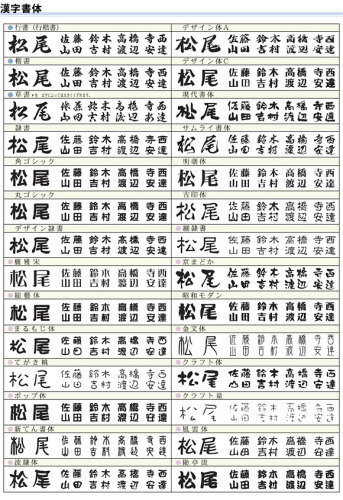書体は デザインF11 は 英字体 のみ デザインF12・F13・F14 は 英字体・漢字書体 がお選びいただけます