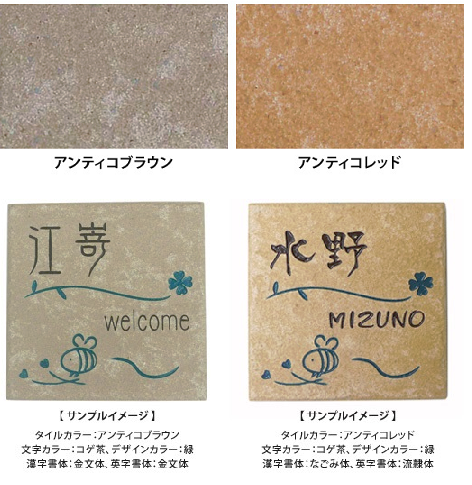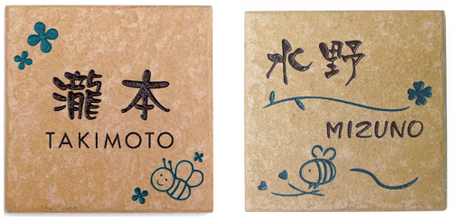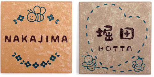 温かみのあるタイルに みつばちのデザインをデコレーションしたタイル表札です。
