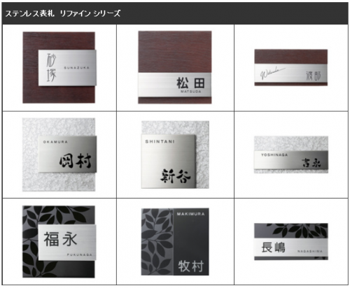 ステンレス表札リファインシリーズ一覧は