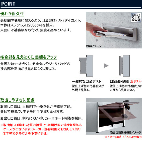 郵便物は上蓋を開けて上から投函 取出しは横の扉からの取出しです