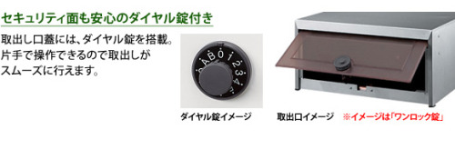 郵便物は上蓋を開けて上から投函 取出しは前面パネルからの取出しです。