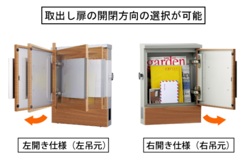 扉の開き方向は、左開きと右開きより、ご購入時に選択が可能です