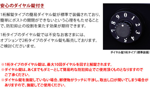 1桁タイプのダイヤル錠でご不安なお客さまには、