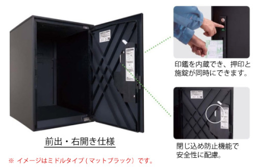 投函は上蓋を開けて、取出しは扉が大きく開くので