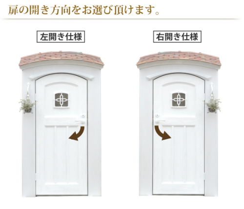 矢印の方向に向かって扉が開きます。扉横のフラワーハンガーは別売となります。