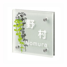シンプルなガラス表札にツタのデザインがアクセントで可愛らしい表札です