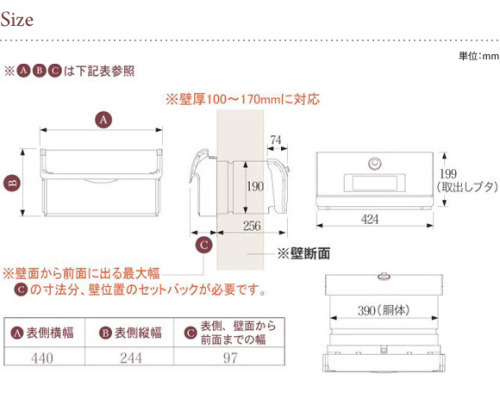 郵便物は上蓋を開けて上から投函 取出しは横の扉からの取出しです