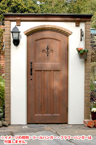こちらの商品には、収納棚、ガーデン用品掛けが標準装備されています