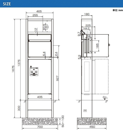 上段には郵便ポスト、下段には宅配ボックスを設置