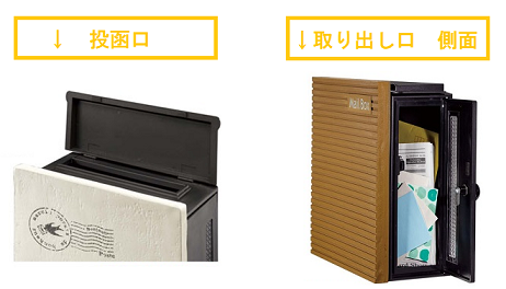 側面の取り出し口にはポストの中身がご確認頂ける“のぞき窓”と