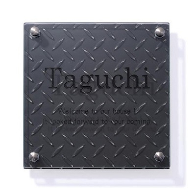 ベース部分のチェッカープレート模様がCOOLなガラス表札