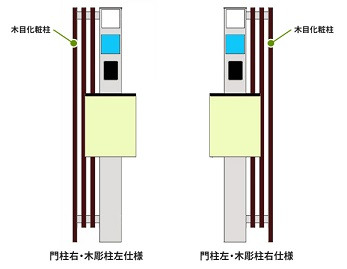 木調の化粧柱は右・左仕様から選択可能!