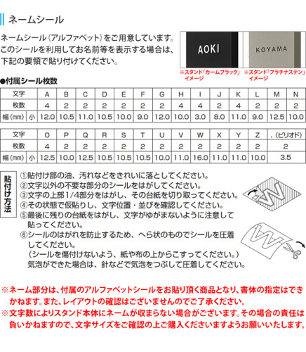 また、付属のネームシールはA〜Zのアルファベットとなります。