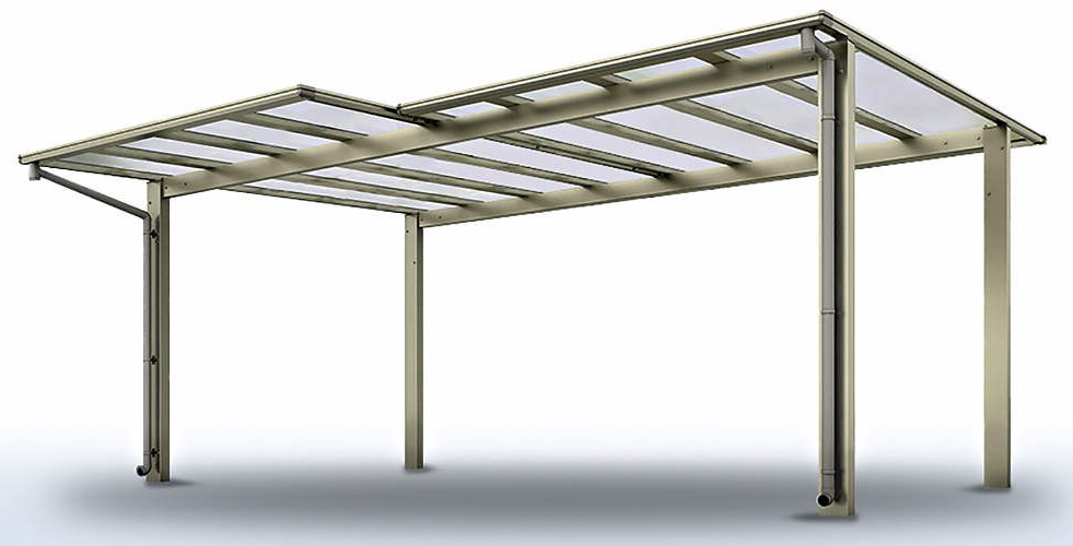片側支持タイプのカーポートを2つ並べて組み合わせた特殊な形状です。