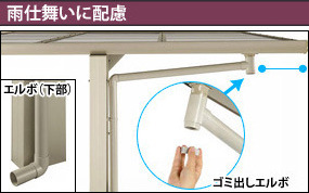 雨樋が標準装備されていますので、大雨でも雨水をスムーズに排水してくれます