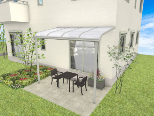リビング前のお庭にテラス屋根を取付けると、休日に家族団らんの場所として、友人の憩いの場所として活用できます。屋根部分には天井カーテンを日除けとして 一緒に取付ければ、夏でも木陰でのんびり寛ぐことができます。