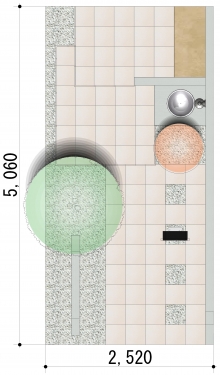 リビングと菜園の間には、土間コンクリートにピンコロでアクセントをつけM.フレージを設置。菜園の土で床が汚れても簡単に洗えます。収穫した野菜は備え付けのガーデンシンクで洗ってキッチンへ。コンテナや飾り棚、緑化スクリーンと組み合わせることでM.フレージ内はまるで緑に包まれた部屋のようです。
