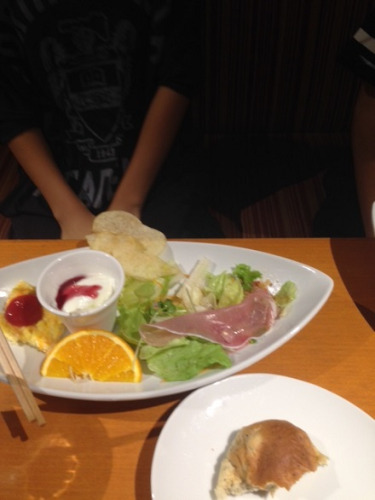 ドリンクにプラス180円でサラダプレートと焼きたてパンが食べ放題で