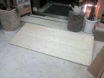 さて、店内の入り口には少し段差がありましたので、スタッフに合い間を見て手作りにてスロープを設置してもらいました。