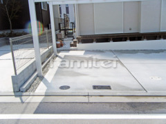 クローズし、カーポートは 三協アルミ ニューマイリッシュ 縦2台用(縦連棟) F型フラット屋根