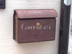 門扉の横に壁付けした 郵便受けポストのエクスポストD-1 ラスティブラウンが、