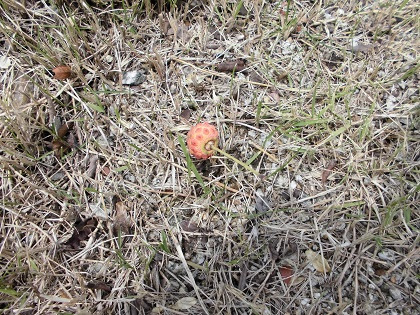 毎朝の店舗の掃除中、芝生の上に赤い実が落ちているのを見つけました