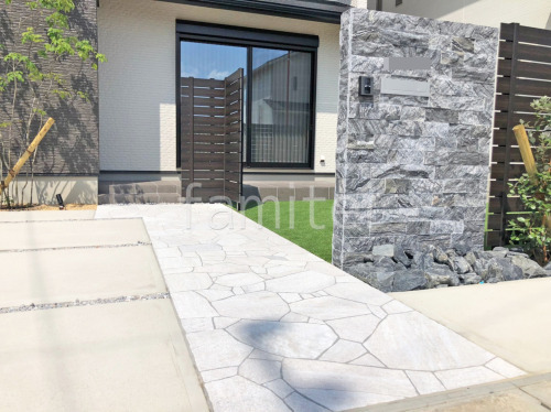 門柱はアドヴァン スプリットフェイスというタイルを使用しております