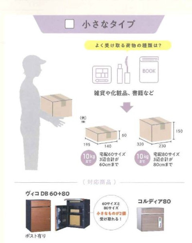 壁付けもできるスリムタイプから大きな宅配物を受け取れるタイプまで、