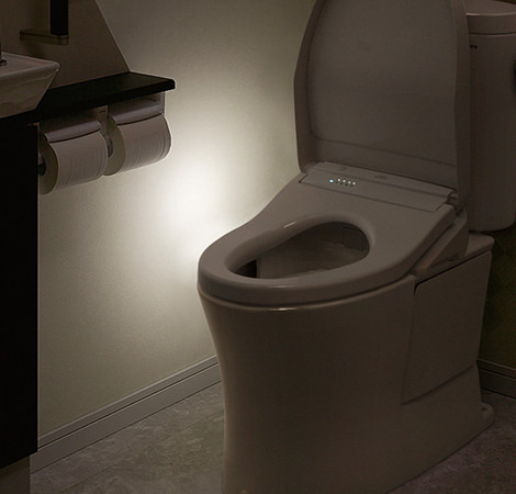 便器に近づくとほんわかしたライトがトイレ内の電気をつけなくても使用できるくらい