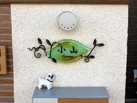 本日は、色合いの綺麗なガラス表札に、おしゃれなアイアンがついた